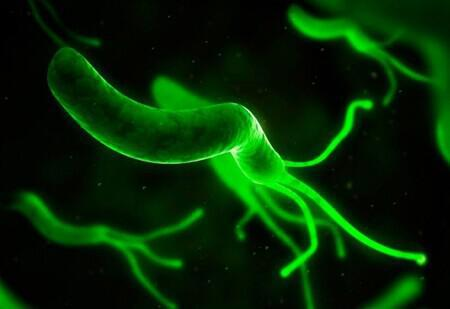 幽门螺杆菌(HP)是一种微需氧的革兰氏阴性细菌,呈螺旋形,人的胃黏膜是HP的自然定植的部位,主要位于胃的黏液层,与上皮细胞紧密接触,造成胃的损害。大量研究结果表明,幽门螺杆菌是感染率最高的细菌之一。目前认为,如果不杀灭幽门螺杆菌,消化性溃疡和慢性胃炎很难被真正控制。